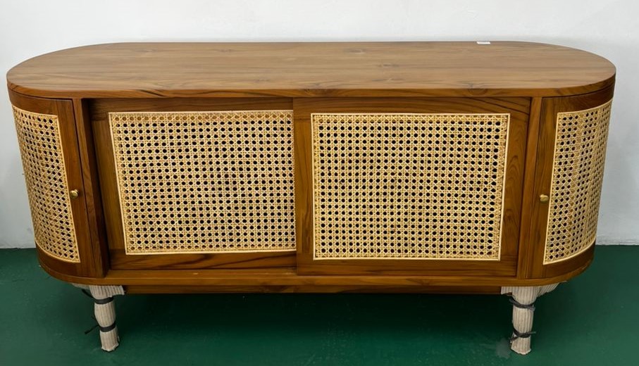 - Material: Kayu jati asli, Rotan asli